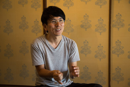 | 嘉戸 | こういう伝統技法の唐紙が、 今の住環境に合うかはわからないです、正直なところ。 たとえば子供部屋には明るい部屋の方がいい。 無理矢理張ることはいいとは思わない。 せっかくやるんやったらここも、ここもって なるんですけど、でもここはやめた方がいいですよと、 ぼくら、お客さんにも言います。 それよりもちょっと灯りを落として楽しめる空間に 張らはった方が絶対いいなぁと思いますし。 |