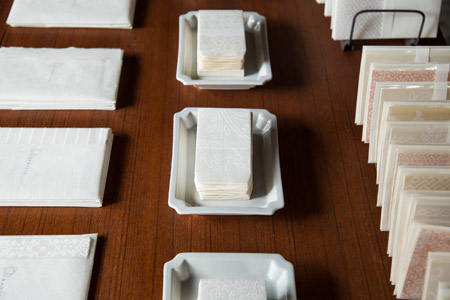 | 伊藤 | 嘉戸さん、ありがとうございました。 最後に、嘉戸さんは襖紙や壁紙だけではなく、 封筒やポチ袋も作っていらっしゃって。 すべて手づくりなんですよね。 |