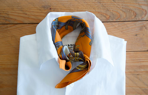 | 岡戸 | 編集部によって全部違ってたみたいでです。 たとえば『アンアン(an・an)』では、 これから来るようなものを スタイリストさんが見つけてきて、 それを着こなしてるのを見て、 「あぁ、そうか」と。 それを自分で工夫して、人と違う格好をする。 それが『アンアン』のスタイルでしたね。 ‥‥そういえばわたし、先輩編集者から、 言われたことがあります。 小っちゃいスカーフがもう大好きで、いつも巻いてたの。 そうしたら、 「スカーフ、首から生えてない?」って(笑)。 いつも白いシャツに、スカーフをしてたから。 |