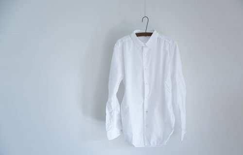 | 岡戸 | ウエストも切り替えない。ただのストーンとした形。 夏は薄い麻だし、コットンもあるし、 冬になると、ウールになっていくの。 それが、マーガレットハウエルの定番だった。 その同じ形のワンピースを、本当によく買ってましたよ。 白いシャツの前でした。 |