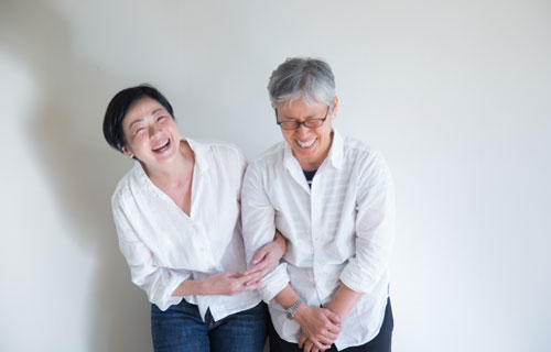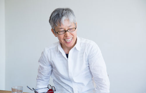 | 岡戸 | グレーみたいな顔で、白いTシャツ着てたら、 「いつもその色ばっかり」って言われて、 「じゃあ、赤買います」って。 重ねて着たらどうかしらと、 私の頭の中では、今、思ってるけど。 |