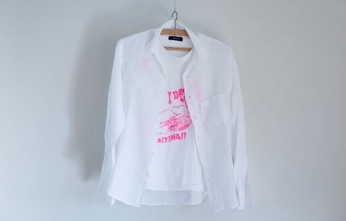 | 伊藤 | そうですね。白いシャツは1年に何枚か買います。 ただ、それを外にあんまり着て行かないもんだから、 家で着てる。 |