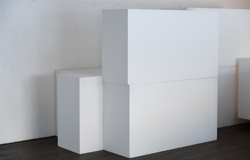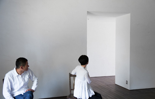 | 山本 | はい、建物の中に「家」や 「小屋」を作ったこともあります。 石膏ボードを敷いて、 床まで真っ白にしたこともありますし。 同じ白でも、ペンキを使ったり、 漆喰を使ってみたり。 |