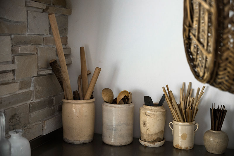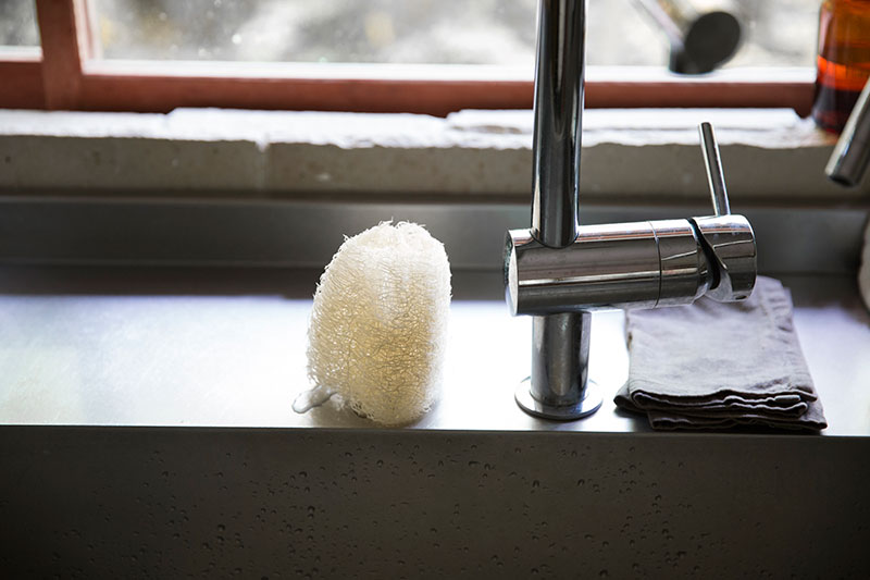 洗った食器は、竹の籠に入れます。 日に当てて乾かすこともあるし、 時間がなければ拭く日もあります。 最初、ステンレスの普通の洗い籠を置いたら、 ステンレスの天板と擦れる音がして、 それが苦手だったので、竹にしました。 そして食器洗いにはヘチマを使っています。 もともと農家さんから頂いたもので、 ある日、食器洗いで使ったら、 とても都合がよかったので。 スポンジは、水が溜まるのが苦手で。 ヘチマは、いちどギュッて絞ると、 パリパリに乾くところがいいんです。 (細川)