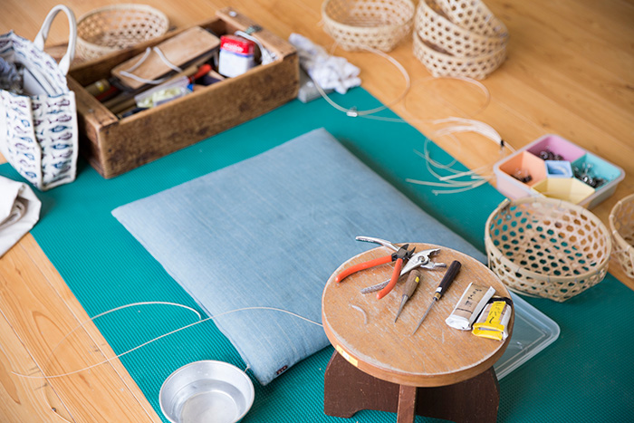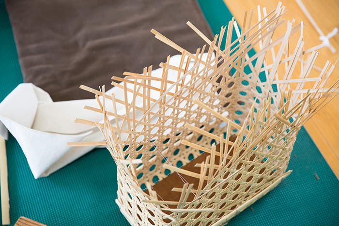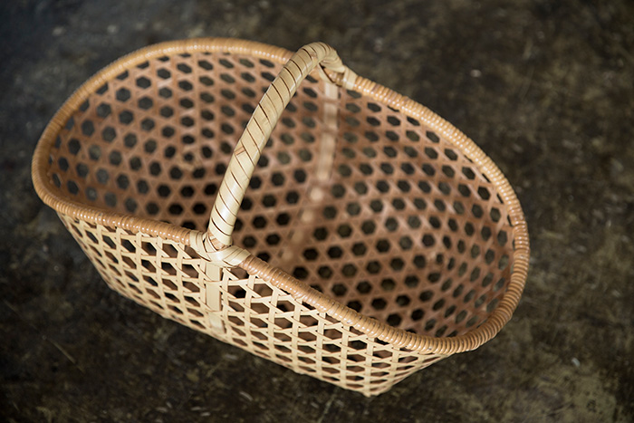 「八つ目」という編み方を利用したバスケットを、