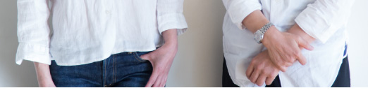 | 岡戸 | そうですね。これを着た時に、 次にもまた同じのを着たい時にと思って、 買ってるんですよね。 素材違いだったりもします。 ほら、同じ形で、麻と綿で違うでしょう? |