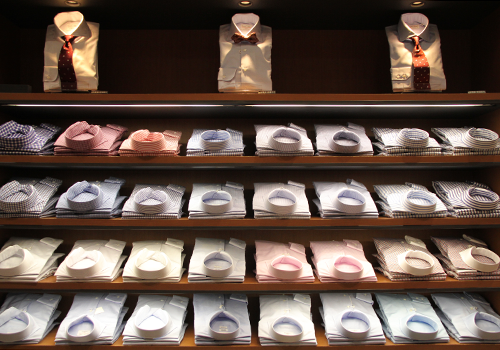 メンズ館のシャツ売り場、たしかに最下段は「白」だ!