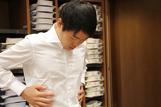 「ではこちらの、動体裁断のシャツを試してみませんか」