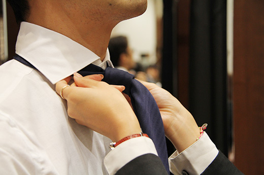 すると「第一ボタンを外したまま、ネクタイをしても、