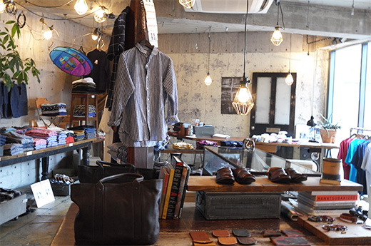 ▲「LIFE LABO」。生活雑貨もありながら、よりシンプルな服をセレクト。カトーデニムの加藤さんと、宇和川さんが夫婦2人だけでつくっているお店です。