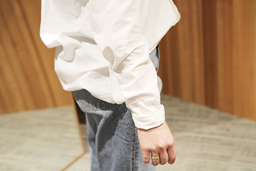▲伊勢丹の大谷さんはまさしく「オーバーサイズのシャツを抜いて」着ていました。