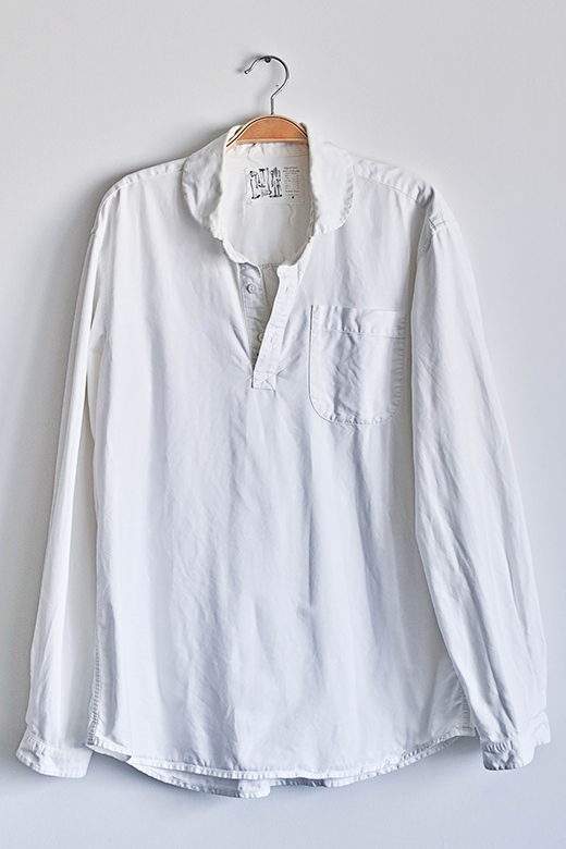 ▲ずいぶん前に買ったプルオーバーシャツ。たっぷりしていて着やすいので愛用。おなかもいい具合に隠れます。