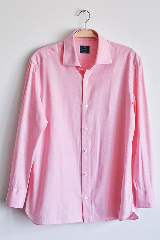 ▲ルイジ・ボレッリ社のイタリア人デザイナーに採寸してつくってもらったシャツです。