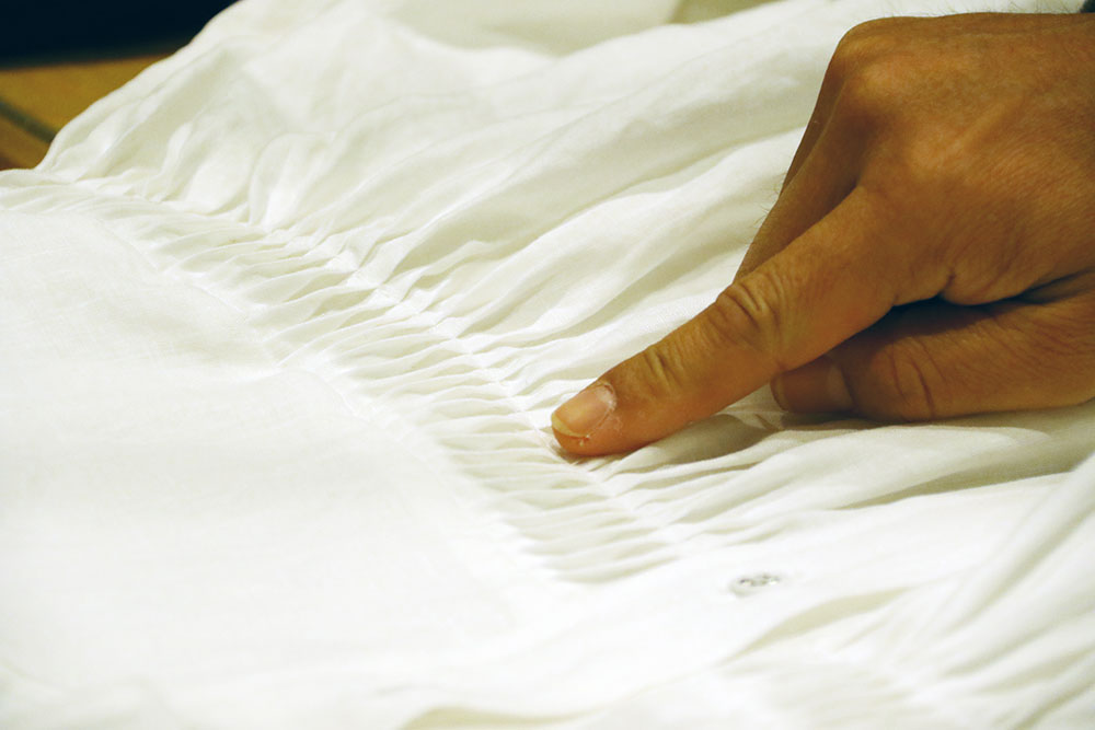 「白いシャツをめぐる旅。2019」で扱うタックシャツは、