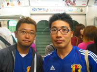 お互いかばんの中から日本代表のユニフォームを取り出す。
