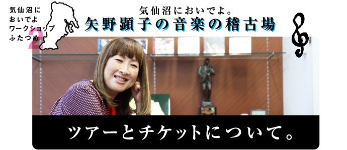 | 東京以外からいらっしゃるかたや、 旅行の計画をご自分で組み立てたい人のために、 「矢野顕子の音楽の稽古場」のチケットを単体でも販売します。 チケットは、WEBチケット・地元チケットの2種類があります。 ♪テーマ曲:「ふりむけばカエル」(アルバム『GRANOLA』収録曲) |