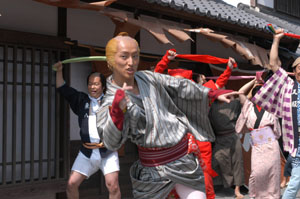 | 4月16日から全国で公開される 映画『真夜中の弥次さん喜多さん』。 すでに東京都内3カ所で封切られ、 上映100館規模の他作品にまじって 15位以内にランクインするほどの大人気なんです! 原作は、「ほぼ日手帳」や 「言いまつがい」の挿画でもおなじみの しりあがり寿さんーっ! そして、脚本・監督は、 『木更津キャッツアイ』『タイガー&ドラゴン』など 話題作を次々と生み出している宮藤官九郎さんーっ! このお2人の組み合わせで描かれる 『真夜中の弥次さん喜多さん』は、 いったいどんな映画になっているのでしょうか。 「ほぼ日」も、この映画のサポーターになります。 しりあがりさんと宮藤さんをお招きして、 糸井darling重里と3人で、まずは座談会。 映画だけの話にとどまらず(毎度のことですが)、 まるで映画や漫画の 『真夜中の弥次さん喜多さん』のように、 話題が次々にワープする、トリップする! まず、今日は、予告編的に、 いちばんすぐに呼べるゲスト、糸井重里に、 映画『真夜中の弥次さん喜多さん』についての インタビューをしてみました。 あいかわらず、よくしゃべります。 ‥‥どうぞ! ![]() 快感のうねりに身をまかせろ! この映画は、ナンセンスなギャグが満載で くだらなさの宝物殿のような作品です。 大判小判がザックザクあふれ出るような感じ。 とにかくおかしな作品なんだけど、 同時に、宮藤さんが抱く、 しりあがりさんの原作や、役者さんたちへの愛情の深さに 並々ならぬものを感じたんですよ。 中村勘三郎さん(映画出演時は勘九郎さん)をはじめ、 宮藤作品ではおなじみの古田新太さん、阿部サダヲさんや、 板尾創路さん、山口智充さんという具合に、 とにかく、次から次へと いろんな役者さんが出てくるんだけど、 どのキャラクターも 実にイキイキしているんです。 おそらく宮藤さんは 「ひとりひとりの役者さんたちが どんな顔をしてこのセリフを言うのかなあ‥‥」 ということを想像しながら この映画の脚本を書いていったんじゃないかなぁ。 宮藤さんが、しりあがりさんや 役者さんたちのことを本当に好きで、 そういう人たちと一緒にやれることが うれしくて仕方がない、ということがよく伝わってきて、 観ていて気持ちがいいし、なんだかうれしかったんです。 主演のお2人も、 長瀬智也さんは、「若き4番バッター!!」って感じで 輝いてますよねえ。 中村七之助さんは、 まるで「どこかの星から降りてきた人」みたい。 映画『ラストサムライ』で演じていた 明治天皇の役もとてもよかったけど、 ああいう、“現実にはちょっといない人”みたいな役を 演じて、あれだけ見事にハマる二枚目はいないんじゃない? 日本が大事に育てたい役者さんですよね。 今回、宮藤さんは、脚本だけでなく、 監督にも初挑戦されているんで、 じぶんが書いた脚本をじぶんで映像化するっていうのは どんな感じなのかなということも 聞いてみたいと思ってます。 初監督ならではの脚本づくりっていうのがあったのかな。 そんなことも聞いてみたいですね。 あとは‥‥(中略)とか、 (さらに中略) みたいなこともあったりするけど、 とにかくですね。 これは、初めて体験する遊園地の乗り物みたいに思って、 ワーとかキャーとか叫びつつですね、 快感のうねりに身をまかせるんだ! と、言いたいです。 で、(中略) こんなにくだらない映画は、 よっぽどの才能がないとつくれませんよ。 くだらないってことと、すけべなこととは、 その人の想像力が総出になりますからねぇ。 観客のくだらなさを超えるくだらなさ! うらやましかったなぁ。 (後略) (糸井重里) 座談会の様子は、来週から数回にわたって、 こちらのページでお伝えしていきますよ。 どうぞおたのしみに! ところで、さきほど、キャスティングのお話が出ましたが、 この映画『真夜中の弥次さん喜多さん』の見どころの ひとつでもあるのが、 役者さんたちが着ている衣装のかっこよさ! 道中合羽にスカジャンの刺繍やブーツなど、 時代劇のワクからはみだしているのに なぜか不自然じゃない、絶妙な衣装を手がけたのは、 「TARO-Tシャツ」プロジェクトを大成功におさめた 伊賀大介さんなんです! 「この映画のお話をいただいたとき、 これは、オレがやるしかないと思ったんです」 と語る伊賀さんにも 後ほどお話をお聞きしたいと思っていますので、 そちらもたのしみにしていてくださいね! 4月16日の全国公開に先がけて、 4月2日からひと足早く公開している 渋谷・新宿・池袋では、出足は絶好調だそうです! 近辺にお住まいの方は、 この週末に映画を観に行っていただいてから 座談会をおたのしみいただくのもおすすめですよ。