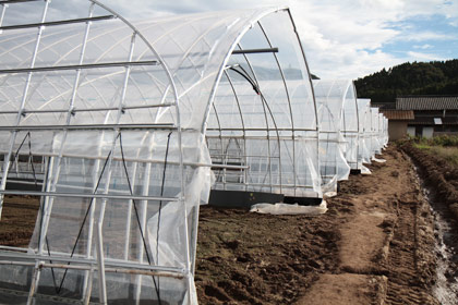 ハウス設営、温度管理、水やり、植え込み、受粉、