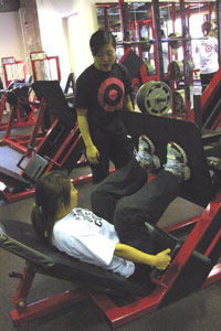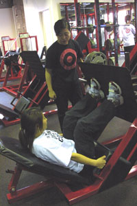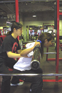 トレーニングは、 「脚・背中・胸・おしりの下」 この4つを重点的に行ないます。 順番に、みていきましょう。 マシンや、ダンベル、バーベルを使いますので、 慣れるまでは、できればパーソナルトレーナーに サポートをしてもらいながら行なってくださいね。 なお、写真では着用していませんが、 トレーニング用ウエストベルトと、すべり止めのグローブの 着用をおすすめします。