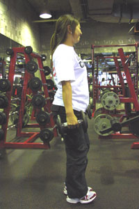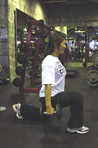 続いておしりの下を鍛えます。 これは、マシンを使わずに、ダンベルと歩行で!