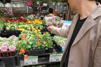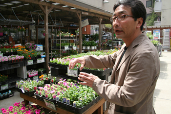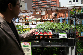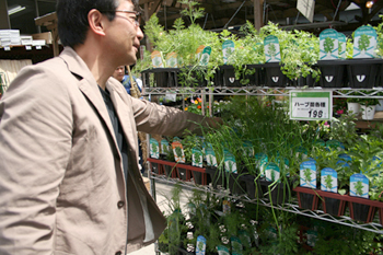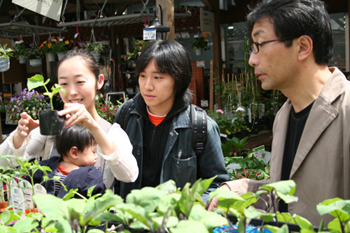 その諏訪さんをアドバイザーとして迎え、 「はじめてのプランター栽培」には どういうものが必要なの? というテーマで買い出しに出かけたのは、 「ほぼ日」ストアで DVDの販売窓口をしているうちに 野菜づくりに興味を覚えた西田くんと もうすぐ1歳になるお子さんに 自分が育てた野菜を食べさせたいと思った マコトさんの2人。