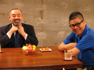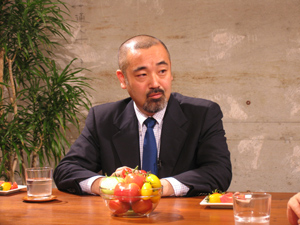 毎回、いろんなゲストを 東京糸井重里事務所社長室にお呼びして お送りしている「月刊やさい通信」。 今回のゲストは糸井重里と 真剣な顔をしてVTRを観ているこの人。 もう、すでにタイトルでピンと きている方もいらっしゃるでしょう。 「おいしい店とのつきあい方。」を 「ほぼ日」でも連載中、 外食産業のコンサルタントでもある サカキシンイチロウさんを ゲストにお迎えしてお送りいたします。 今回、番組で取り上げるテーマは「トマト」。 「ブランド化するトマト」について 糸井重里とサカキシンイチロウさんが その人気の秘密をほりさげていきます。 そういえば、永田野菜の代表選手もトマトですし、 「だれでもつくれる永田野菜」DVDを 購入された方も 「まずはトマトを作ってみたい!」と おっしゃってます。 アンデス山脈の高地が原産地であるトマトが どうしてこんなに人気野菜となったのか? それはサカキシンイチロウさんの分野である 外食産業の動きがポイントになっているようです。 「ほぼ日」では穏やかな語り口調で 連載中のサカキシンイチロウさんですが ここでは「するどいプロの目」の発言が 飛び出しますよ! 野菜ファンでなく 「おいしい店とのつきあい方。」ファンも 必見の「月刊やさい通信」。 6月25日、NHK総合テレビにて 午前6時15分からのオンエアです。 お見逃しなく!