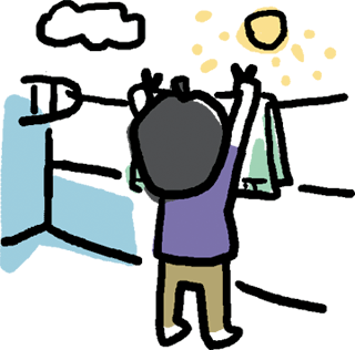 補足しますと、天日干しというのは、 「紫外線にあてる」ということが大事です。 今回、ベルの実験では、直射日光にあてましたが、 そうする必要はありません。 日かげでも、人の肌が陽に灼けるように、 直射日光でなくても、紫外線はあたります。 「晴れた日に、風通しのいい場所に陰干し」でも じゅうぶんな効果がありますよー。 ちなみに直射日光にあてすぎると、 タオルの線維が硬くなってしまうことがあります。 その話は、また別の回に。 |