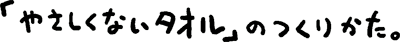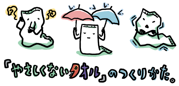 じゃあ、使い古したぞうきんと 「それは、綿蝋ですね」 めんろう。 「綿蝋というのは、綿の糸に含まれている ちなみに、「やさしいタオル」に使っている それでも、綿蝋は、洗濯を重ねると、 |