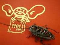 | 第2回 パーフェクト ガイコツの絵を描いた 田中靖夫さんの仕事場に行って ぼくがそこで見たものは……↓ ![]() ゴキブリのオブジェだった。 針金でできている。笑うしかなかった。 これ、目の前で見るとほんとうにゴキブリなの! そんなのがわさわさビニールの箱に入っていたの。 「ぼくの仕事のなかでパーフェクトという形に なっているのは、今のところこれしかないんです」 田中さんはぽつりぽつりと語りはじめてくれた。 その手にはニッパーと針金を持っている。 針金を曲げて、時々パチンとニッパーで切る。 「ひさしぶりにつくるなあ」 「ああ、もう1回巻くんだな」 針金は数分のうちにゴキブリになっていた。 「このゴキブリにはぼくは妙に自信があるんです。 『妙に』というか『絶対に』自信がある。 フォルクスワーゲンのビートルズって 妙なかたちをしててそれにこだわってるじゃない? あれに近いような気持ちというか、 『あの色とこのかたちで、もう完璧だよね』って。 ぼくとしてはこれに関しては完璧なんだよね。 どこに持って行ってもわかりやすいし、強いし、 あげやすいし。針金だったものがこういうものに。 ぼくはもともと工業デザイナーだったから、 工業デザイン的なものが好きなんです。 ものをつくる材料やモチーフや つくりこんでいったプロセスがあって、 それはなかなかこのゴキブリのようにはいかない。 何かが欠落しちゃう。例えばこのゴキブリを ニューヨークでつくろうと思っても、 こういう針金の材料がないわけ。 日本ならそこらへんの金物屋にすぐ売っている。 それに、例えばこうやって巻いてあるけど、 これが逆巻きだと逆の向きに使わなきゃいけないから 針金の巻き方ごと全部戻してやらないといけないの。 売っているところによって品が違っているけど、 これはもうつくっていく作業に完全に合った 針金になっているからね。色ツヤとかも含めて」 完璧さについて、もうすこしきいてみる。 「以前に工業デザインをやっていたので ぼくは手順も気になるほうなのですが、 その作業手順の点についてでも このゴキブリに関しては もうこれ以上直しようがないんです。 つくっているときの気分も直しようがないし、 手触りとか、いろんな意味でパーフェクトという。 背中の針金の巻きかたも『これは7回だ』とか、 このへんをどうおさえるとこういうカーブが出るとか もうすべてが完璧に決まっているんです。直せない。 ただの針金があるところで突然ゴキブリになる、 その瞬間がけっこういいと思いますね。 『あ、これはこういう風につくればいいんだ』 これの場合はある日にわかったんです」 ![]() ほぼ日紙袋とゴキブリ ![]() うらがえしてみた 「足も、こっち側の足がこういってこういって。 戻してひゅっとぎざぎざみたいなのがあって。 ここは卵を産む産卵管というのがあるような、とか、 今度後ろ足がここにこうだとか考えてつくって。 実際のゴキブリはこうはなってないけど、 これはゴキブリに見えるし、巻き数などの 基本のデザインはまったくおなじになります。 それを一回一回おんなじくらいのペース、 4分から4分50秒くらいでただただつくれるんです。 そういうのをぼくは目指しているというか 自分にとっての理想の仕事としているわけです。 これ以上かたちを変えられないような 完璧さが……あ、そう言ってしまうとおかしい。 そんなにそれほどぼくは大事なこととは 思っていないんですけど……言葉って変ですね」 静かに語ってくれる田中さんの言葉に、 ぼくはもう少しつづきをききたくなった。 (つづく) |