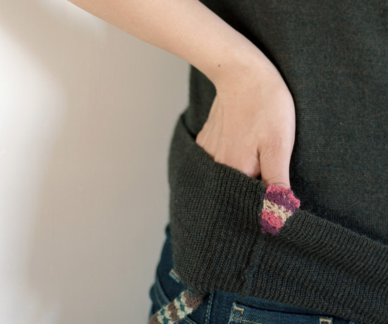 袖口のほつれた糸を クルクルよじって短くしてみたり