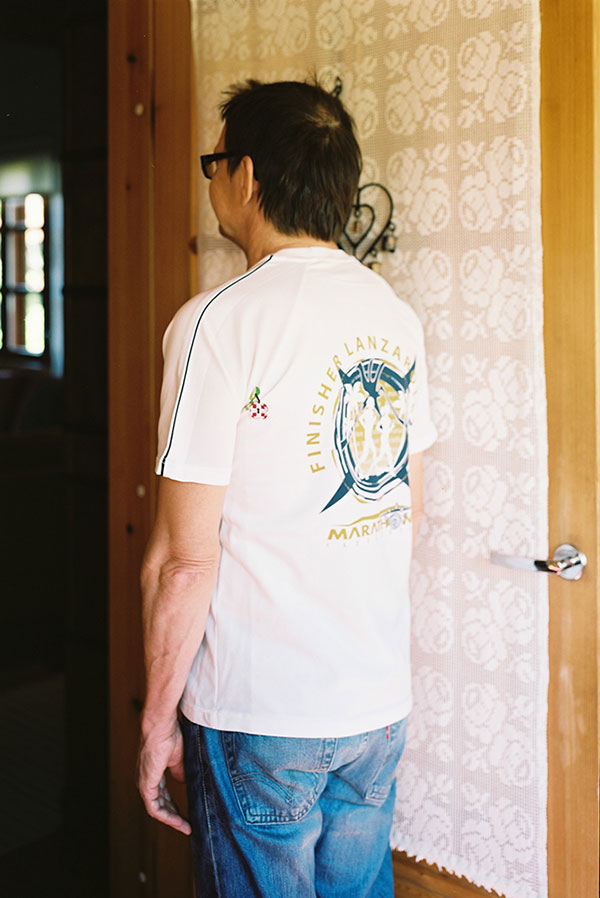 50歳の記念に走ったマラソン大会で着たというTシャツ。