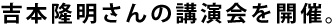 生の吉本さんの講演をお聴きいただけるチャンスです。