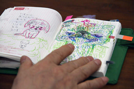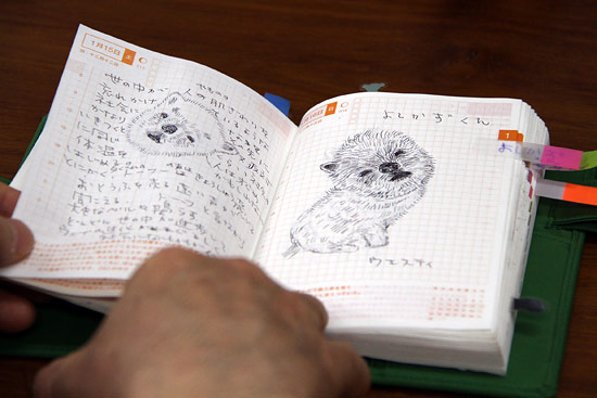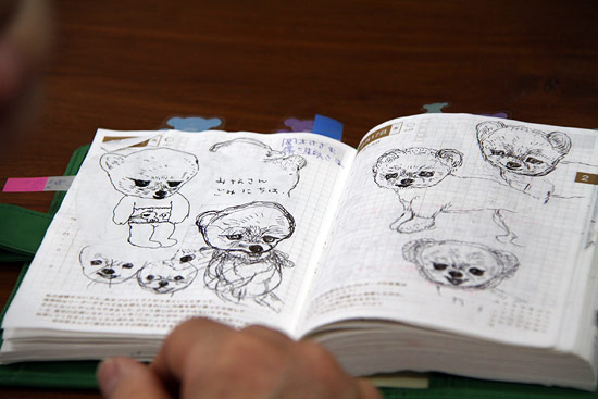 | 糸井 | 手帳にいっぱい デッサンしてるんだね。 あ、これはごまちゃんだ。 |