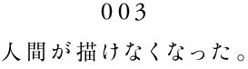 | ミュウゼ | はい、以前は人間を ものすごく描いていましたが 描けなくなりました。 これは自分の描き方の特徴だと思うんですが、 描かれた人間が心を持ってくるような気がして。 |
