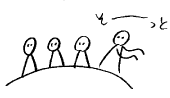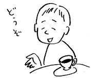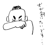 こう、背中を丸めて、おっさんみたいな顔で。 |