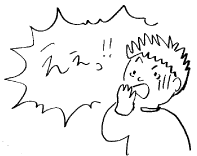 「ガムを噛みすぎて、口の中が傷だらけだ」だって。 |